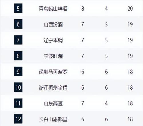 第二梯队由北京和青岛组成,两支球队分别位列第四和第五。北京队近期状态有所下滑,过去五场比赛输掉三场,暴露出攻防两端的问题。青岛队则遭遇两连败,特别是惨败给上海的比赛显示出与顶级强队的差距。这两支球队需要尽快调整状态,否则可能被身后的追赶者超越。