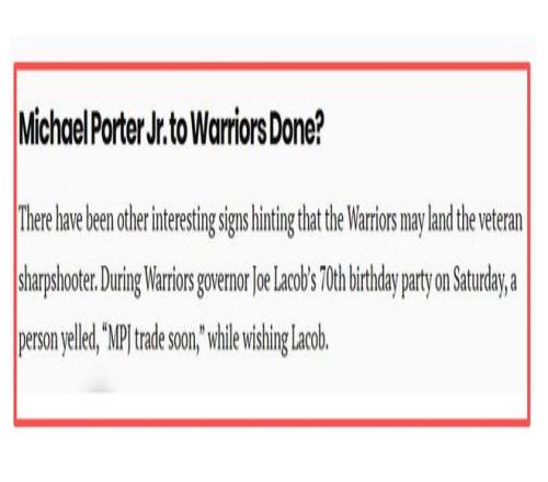 北京时间1月12日,NBA交易市场的热度随着2月6日交易截止日的临近持续攀升,而金州勇士队的一笔潜在交易传闻更是成为联盟热议的焦点。据美媒Legion Hoops报道,勇士队正对篮网前锋小迈克尔-波特展开猛烈追逐,管理层已就交易细节展开深入磋商。更关键的是,就在今天,一笔涉及勇士、国王与篮网的三方交易框架逐渐清晰,若能顺利达成,将大概率重塑西部竞争格局,为库里冲击生涯第五冠增添重磅砝码。