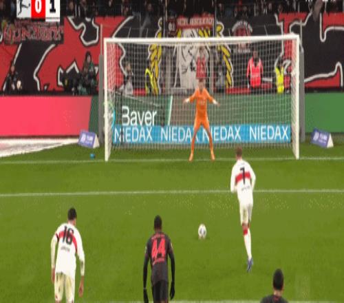 第66分钟,沙博特禁区犯规送点,格里马尔多操刀点射命中,勒沃库森1-4