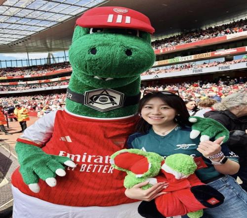 A:我叫菲菲,是一名95后女球迷,出生在山东济南。我的俱乐部主队是阿森纳,因为现在在伦敦工作,所以每到世界杯或大赛,我也会选择支持英格兰。我和足球的最初记忆其实非常生活化。小时候的夏夜,会跟着爸爸去济南的烧烤摊看世界杯,老电视、小板凳,还有一群陌生却因为足球迅速热络起来的大人们。现在回想起来,那些画面都还是特别珍贵的记忆。中学时,班里大部分同学都是皇马和C罗的球迷,每天都能听到朋友们聊足球,我们也会一起去看山东泰山的主场比赛。上大学之后,我更多是看世界杯和欧洲杯,不太会熬夜追联赛。直到去英国读书,才和室友们一起关注英超的各种动向。但真正的转折点,是去年正式来到伦敦工作,我才开始尽量一场不落地走进球场支持自己的主队。截至目前,我已经在现场看过45场比赛,这种连接是过去十几年隔着屏幕无法比拟的。我想我这辈子都会是阿森纳球迷了。